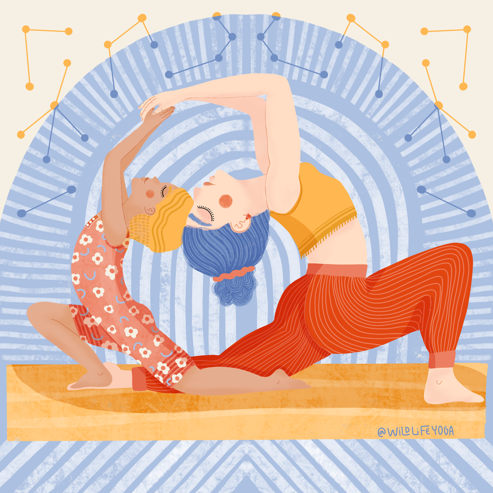 ✿ 49 pages filled with 44 printable hand-illustrated partner yoga cards