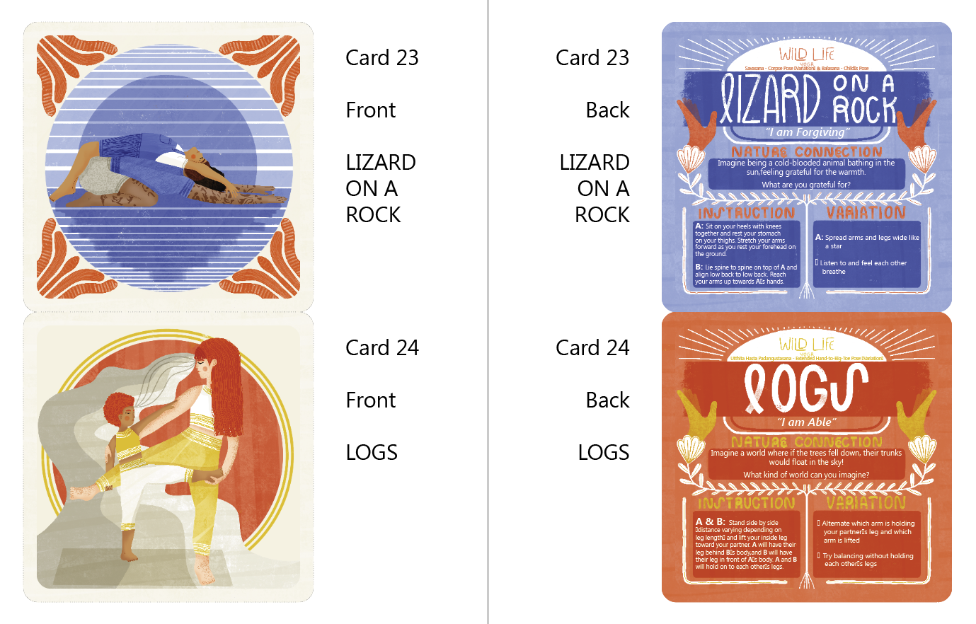 Reconnect through movement, laughter, and mindfulness with this inclusive, printable nature-inspired yoga card deck made for kids and their grown-ups. Each 5x5 inch, hand-illustrated partner yoga card features a unique pose inspired by animals, elements, and the natural world, designed to help families bond through playful movement, imagination, and mindfulness for kids.